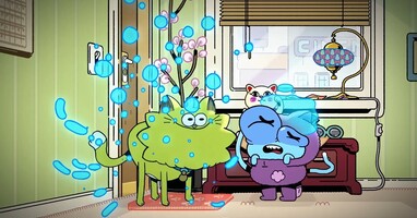 مکس و گارک در یک سطل زباله گیر می کنند و توسط یک مواد چسبناک به یکدیگر می چسبند و...