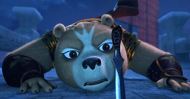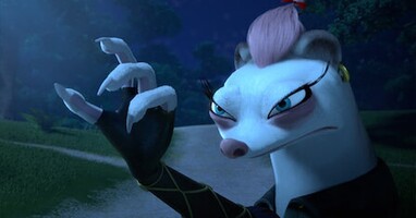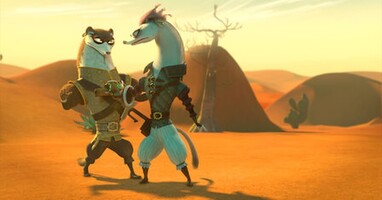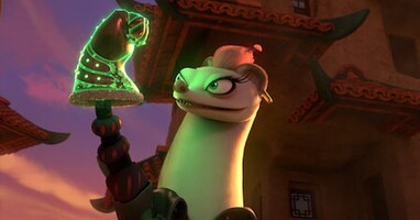 Po's popularity is gone after wicked weasels steal a powerful gauntlet. English knight Wandering Blade offers a chance to chase down the thieves.